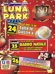Natale al luna park di Terni. I gestori del grande parco di divertimenti, inaugurato alcune settimane fa nel piazzale dello Staino, in occasione delle imminenti festività natalizie hanno organizzato una serie di iniziative. Si comincia domenica 24 dicembre, a partire dalle 15, quando il luna park verrà aperto al pubblico e si potrà salire su tutte le giostre pagando soltanto 2 euro. Il giorno successivo, uno speciale Babbo Natale girerà in mezzo alle tante attrazioni mettendosi a disposizione di grandi e piccini per fare dei selfie. Si potranno vincere biglietti omaggio per tutte le giostre. Il giorno di Santa Stefano, martedì 26 dicembre, altra giornata speciale con lo spettacolo dal vivo, destinato a tutta la famiglia, con artisti e mascotte. nei giorni successivi i gestori del luna park stanno organizzando altre iniziative tese a richiamare il grande pubblico in questo luogo che continua ad avere un grande fascino nei confronti di bambini, ragazzi, ma anche tanti adulti.